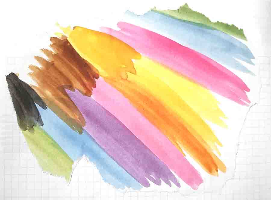 Wenn wir das vermeiden wollen, müssen wir uns beim Mischen von Farbtönen (auf Papier oder auf der Palette) immer zwischen zwei Grundfarben bewegen. Sobald diese Grenze überschritten ist und die dritte Grundfarbe hinzukommt, rutschen die Farben in Richtung Braun.